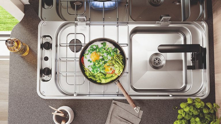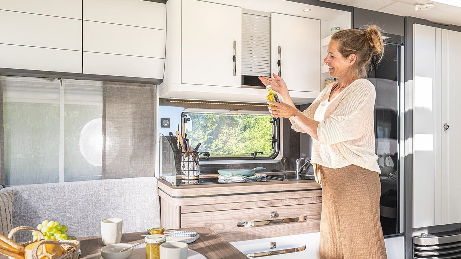 Auch bei den Baureihen ONTOUR C, T und MAXIA T gibt es spannende Weiterentwicklungen: Neben gezielten Modellpflegemaßnahmen profitieren beide Serien von einem aufgewerteten Küchenbereich – unter anderem durch einen neuen Gaskocher und ein modernes Edelstahlspülbecken.