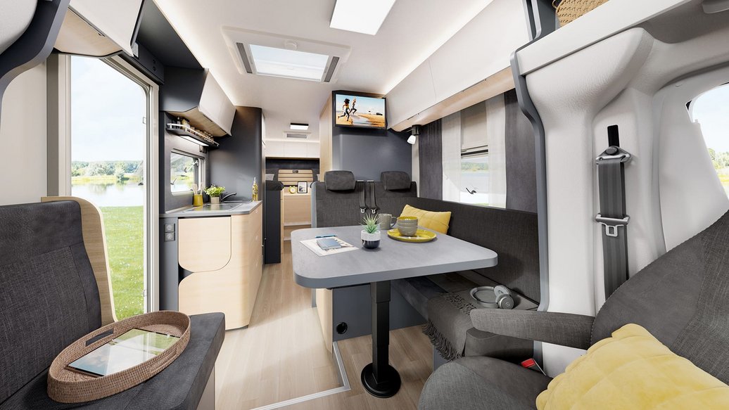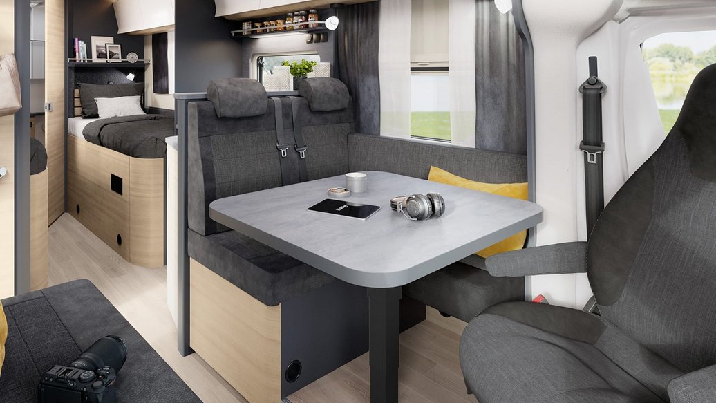 Wohnen wie im modernen Apartment - nur auf Rädern. Das Zentrum deines MAXIA T: die gemütliche L-Sitzgruppe für die kleine oder ganz große Runde. Mit gegenüberliegender Sitzbank ist sie gleichzeitig eine Face-to-Face-Sitzgruppe.