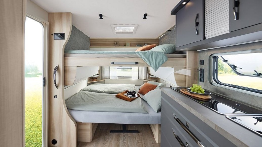 Viel Platz für Familien und alles was dazugehört. Die 12 Grundrisse der Hobby DE LUXE Baureihe sind gemacht für bis zu 7 Schläfer und jede Menge Gepäck. Besonders vielseitig ist die Baureihe hinsichtlich Bettvarianten: Neben dem klassischen französischen Bett, sind auch Grundrisse mit Einzelbetten, Queensbett oder Hubbett wählbar.
