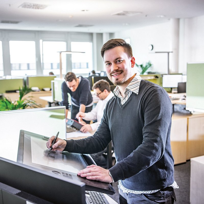 Finn: Mein Name ist Finn Selmer und ich bin Konstrukteur in der Reisemobilkonstruktion. Ursprünglich habe ich von 2004 bis 2007 hier im Unternehmen eine Ausbildung zum Holzmechaniker absolviert. Nach meiner Ausbildung arbeitete ich ein Jahr als Facharbeiter in der Reisemobilproduktion. Danach habe ich die Weiterbildungen zum Holztechniker, Tischlermeister und Objektdesigner gemacht, bevor es mich 2011 wieder zu Hobby zurückzog. Anschließend bewarb ich mich auf eine Stelle im Bereich Entwicklung und Design – und war genau zur richtigen Zeit am richtigen Ort.