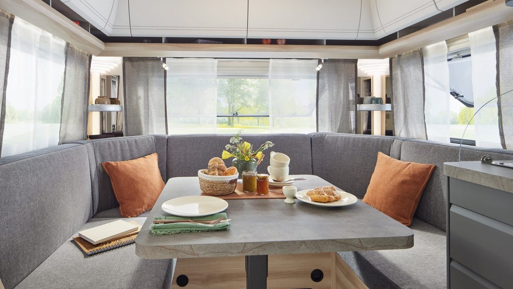 Den nye PRESTIGE T forener PRESTIGE-seriens markante yachtdesign med den populære ruminddeling i Hobbys delintegrerede. Op til fire personer finder plads i sengene på langs bagi og i den valgfri sengeombygning, der om dagen forvandles til en rummelig L-siddegruppe. Det store sidekøkken og den isolerede garage med masser af plads til opbevaring bagi gør PRESTIGE T til den perfekte ledsager – til weekendudflugter eller til lange eventyrrejser.