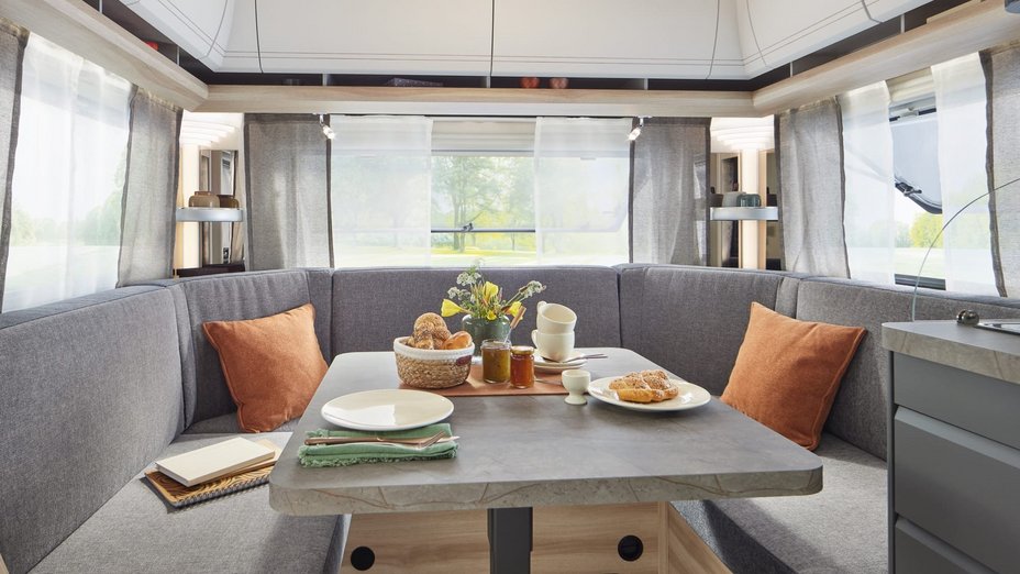 Moderne, fleksible og masser af plads til børn og pakkenelliker: Oplev familiecampingvognene fra Hobby. For eksempel MAXIA 595 KML med op til syv sovepladser og multifunktionelt område bagi i skandinavisk hyggedesign.