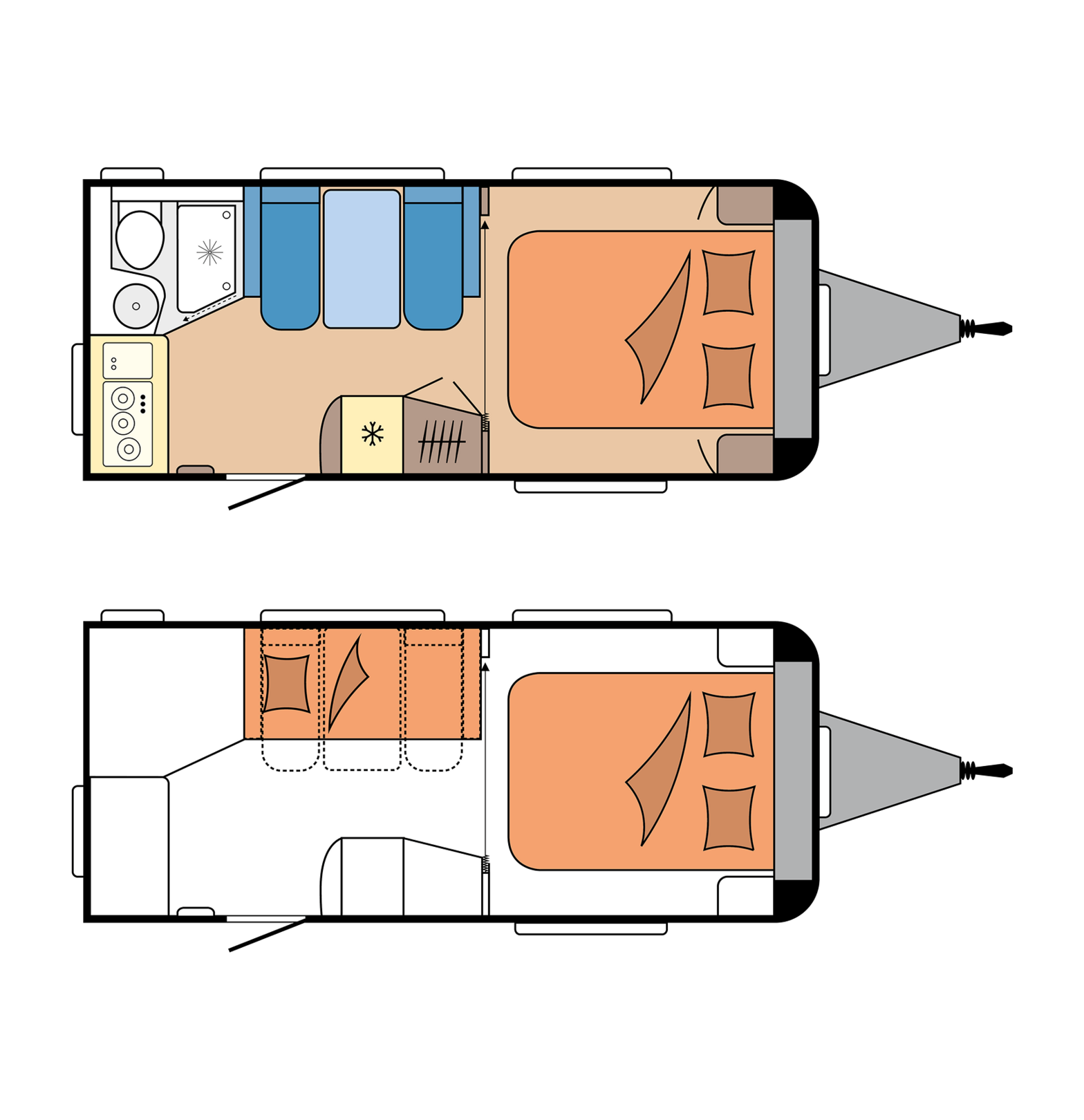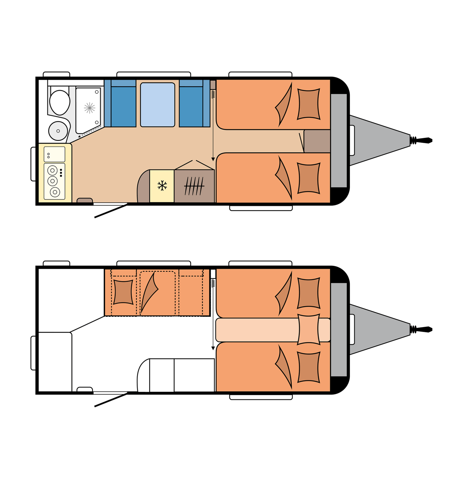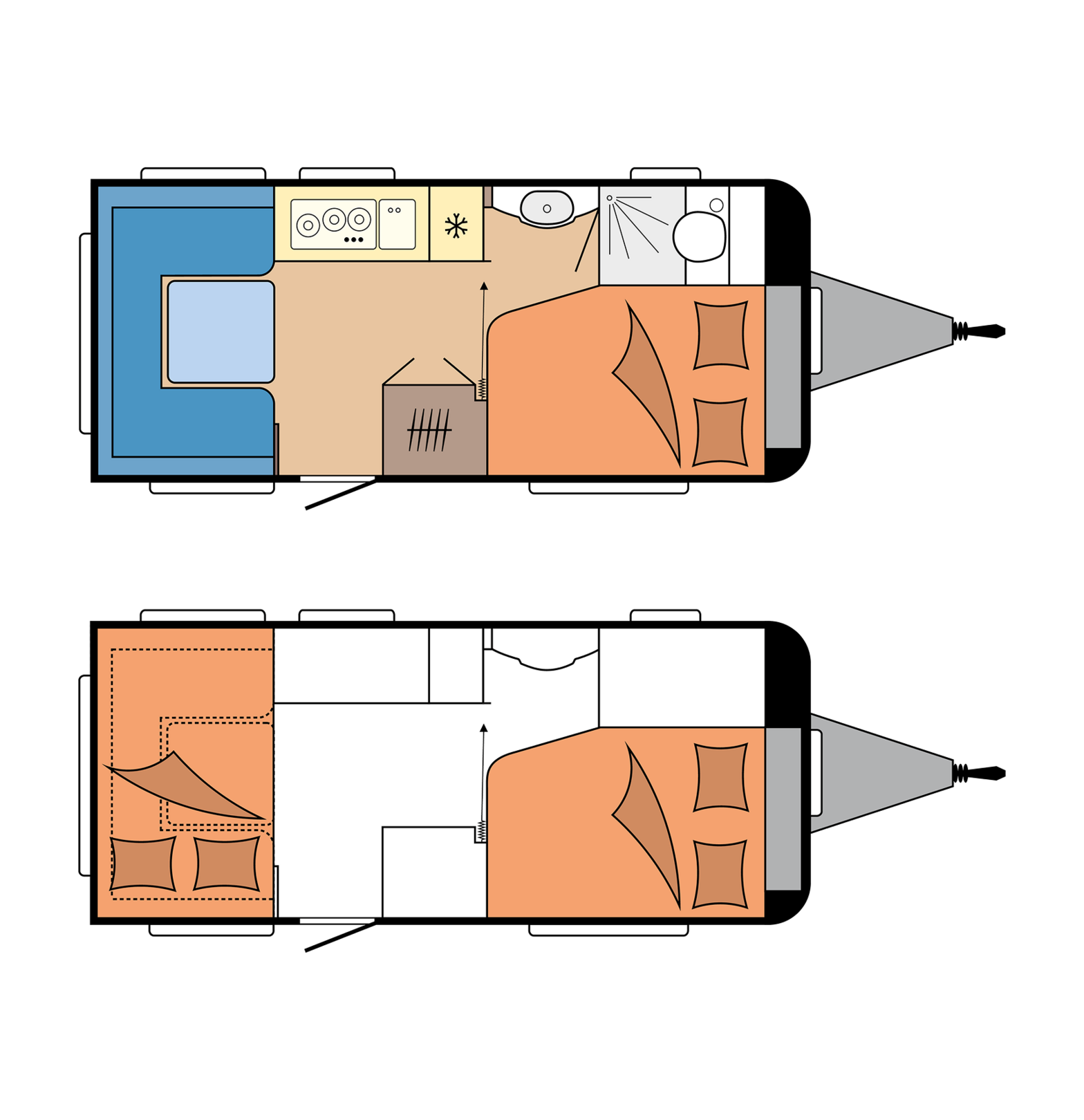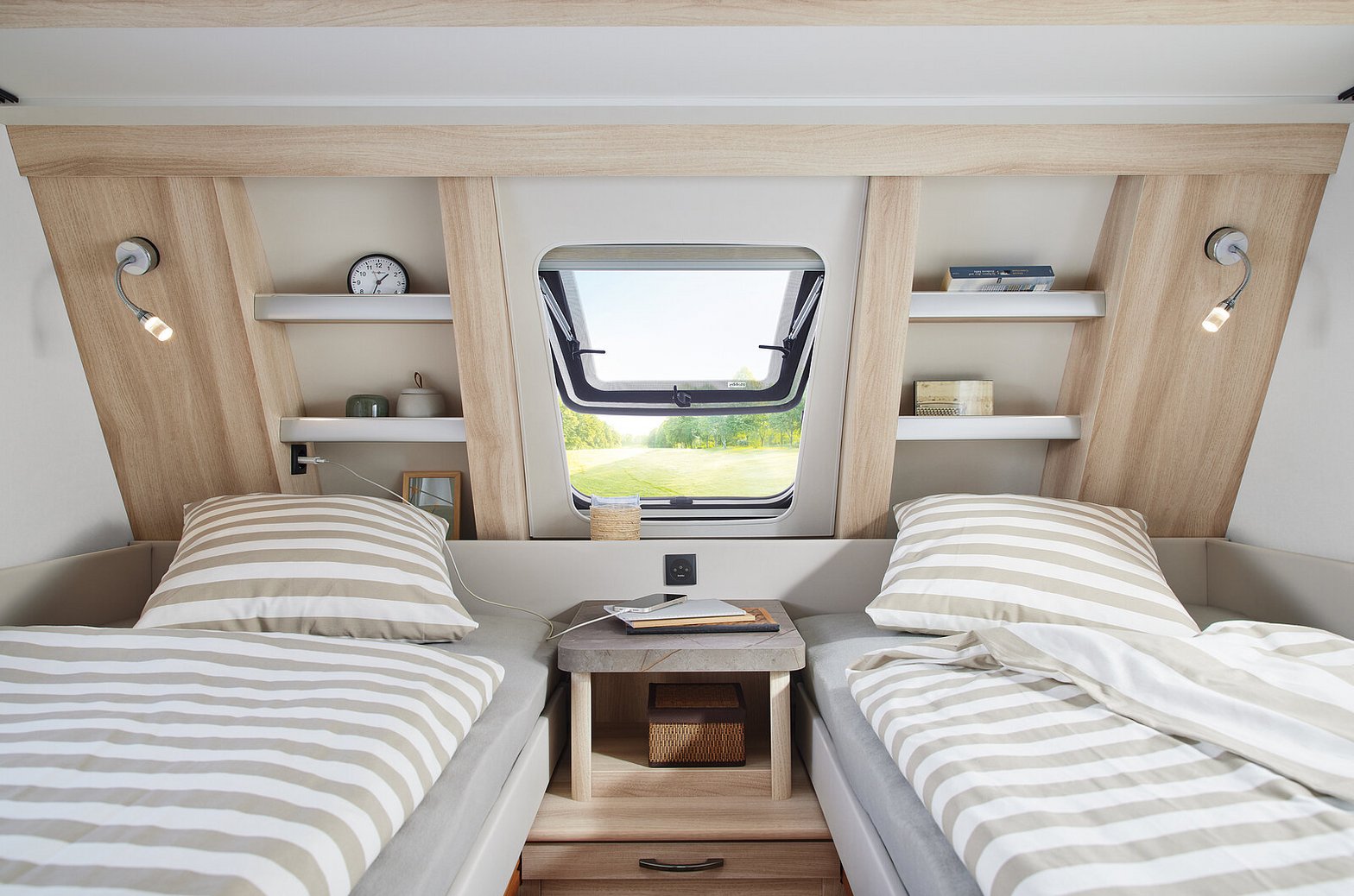 Baseret på den populære DE LUXE-serie kommer DK LINE topudstyret og i 3 gennemtænkte grundrids. Ideel til par, og den lille familie. Uanset om det er en fransk dobbeltseng, enkeltsenge eller en komfortabel queensize-seng: Hver model er smart indrettet og giver maksimal komfort.