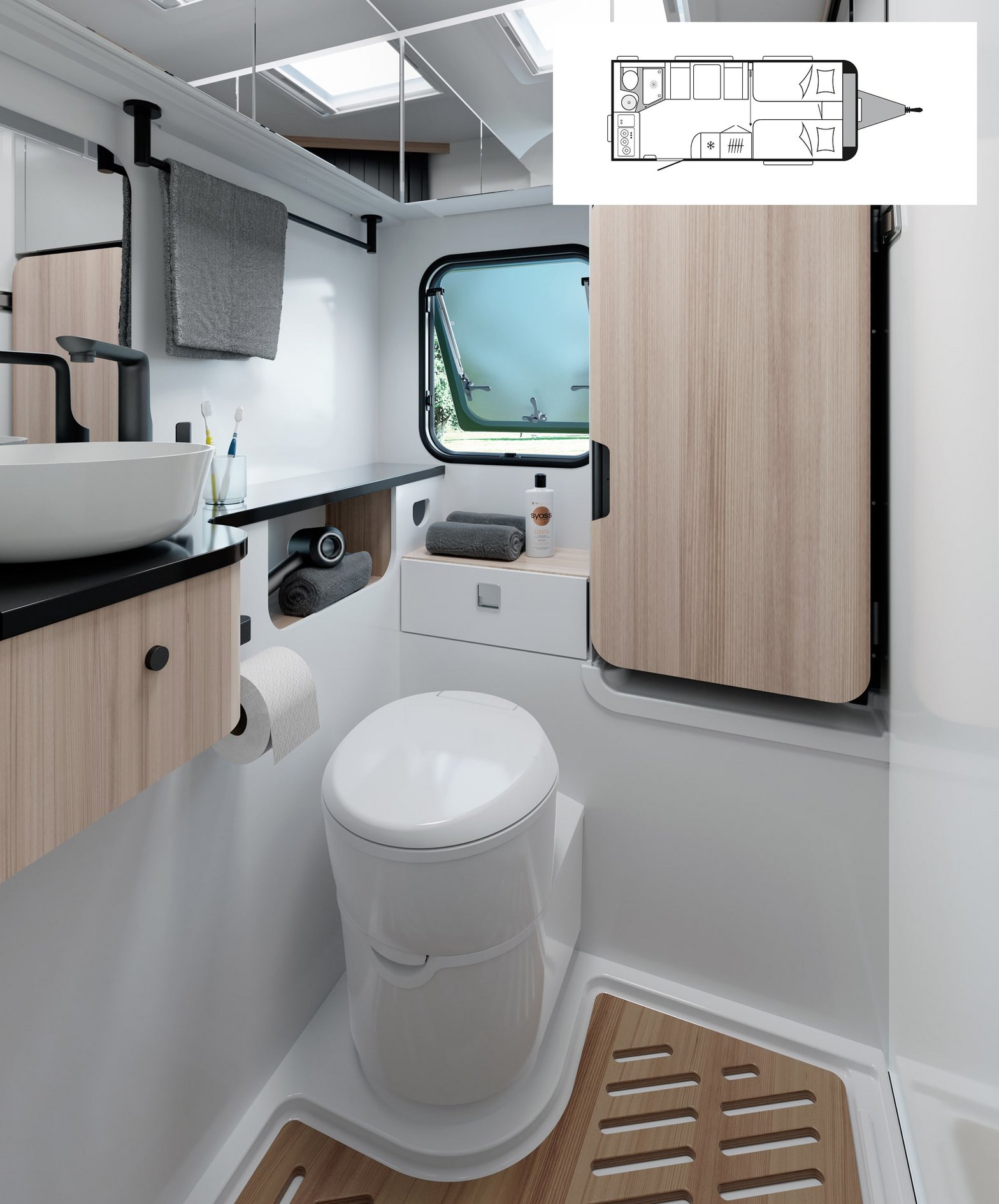Kylpyhuone mukana matkassa tekee riippumattomaksi. Omassa Hobbyssasi HobbyKomplett-täysvarustelu takaa kodin mukavuudet myös reissun päällä. Joustavien ratkaisujen ansiosta kylpyhuoneesta löytyy tilaa WC:n, suihkun ja pesualtaan lisäksi myös pyyhkeille ja muulle.