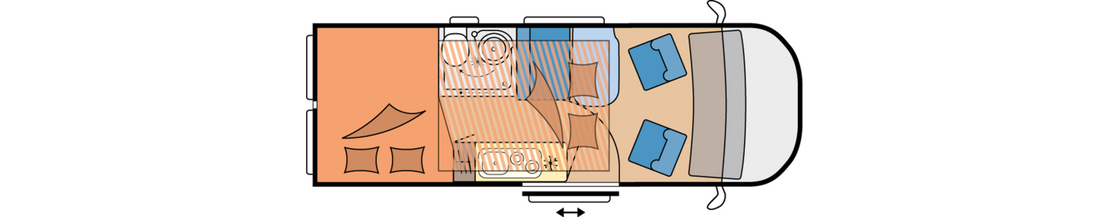 Bist du alleine oder als Paar unterwegs, kannst du den Heckbereich einfach als zusätzlichen Stauraum nutzen. Ob Fahrräder, Angelausrüstung oder Feuerschale, ab sofort hast du immer alles dabei. Auch das aufwendige Umräumen oder der Anbau von externen Gepäckträgern bleibt dir erspart, denn das tägliche Leben findet nun ganz bequem im vorderen Teil deines Campervans statt.