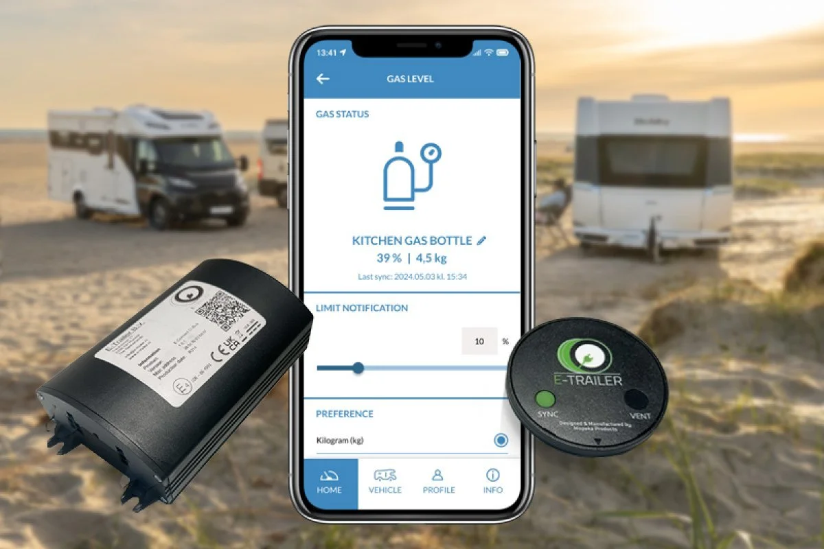 E-Trailer startpakke basic (nivellering av kjøretøy og gassnivåindikator med E-trailer-appen)